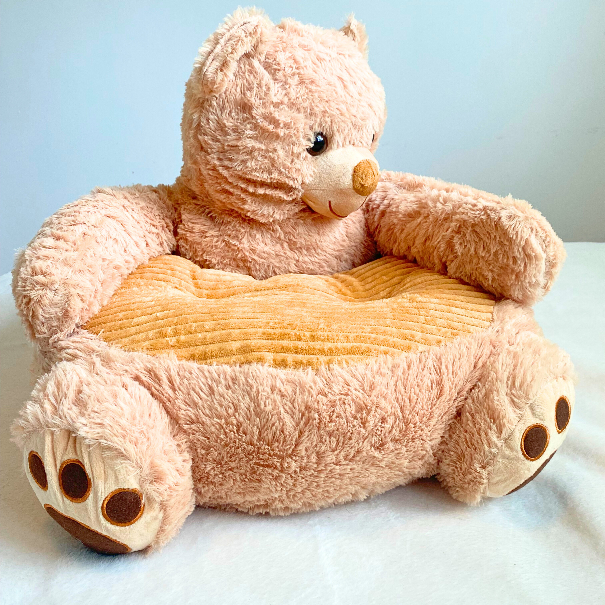 Lovingly made with high-quality plush materials and attention to every detail, the Teddy Hugs Super Soft Pet Bed is designed to bring warmth and joy to your living space. Its cushy body, velvety fur-like texture, and adorable bear-paw base are all carefully crafted to offer a soothing environment.Ā