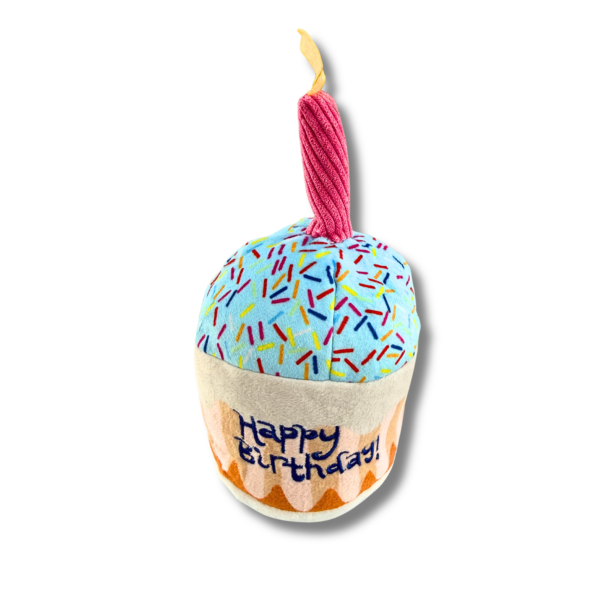 🎂 A large plush birthday cake with colorful candles 🧁 Cute sprinkle-topped mini cakes 🎁 A soft birthday gift box tied with a festive ribbon 🦴 A cheerful bone toy printed with “Happy Birthday”